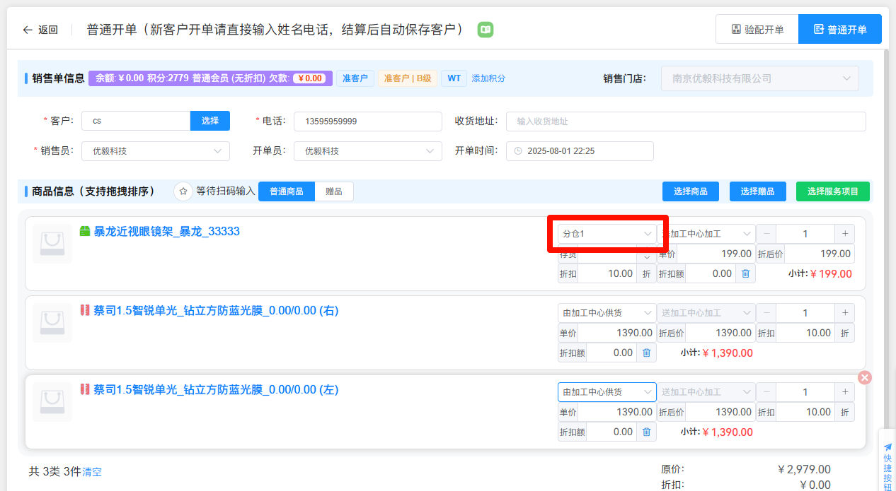 如需销售门店提供加工商品,只需在选择商品时,将【供货仓库】选择为实际供货的仓库即可。销售单保存后,系统会自动扣除对应仓库的商品数量。